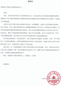 On April 25th, 2025, we received a letter of appreciation from China Wuhuan Engineering Co., Ltd., recognizing our engineering team’s outstanding professionalism and service performance in the supply and installation of rotary filter equipment.